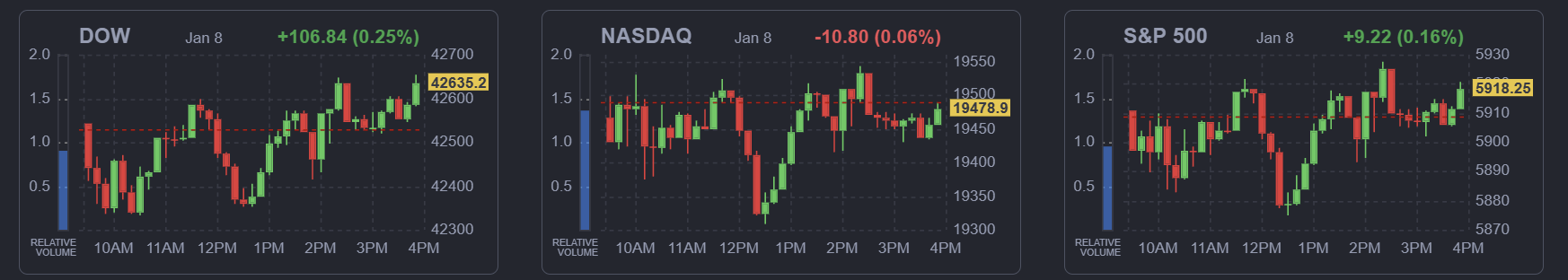 1월 8일 수요일(현지시각) 미국 증시 동향