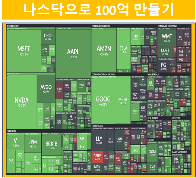 "낮은 CPI → 금리 인상 우려 감소 → 투자자들의 주식 시장 투자 증가 → 주가 상승"이라는 순서로 이어진 것입니다. CPI가 예상보다 좋게 나오면서 투자 심리가 개선되어 주식 시장에 대한 투자가 활발해졌고, 그 결과 주가가 급등한 것입니다. 초보 투자자분들은 CPI, 금리, 주가의 상관관계를 이해하는 것이 매우 중요합니다. 이 때문에 S&P500 대부분의 종목이 상승을 했습니다.