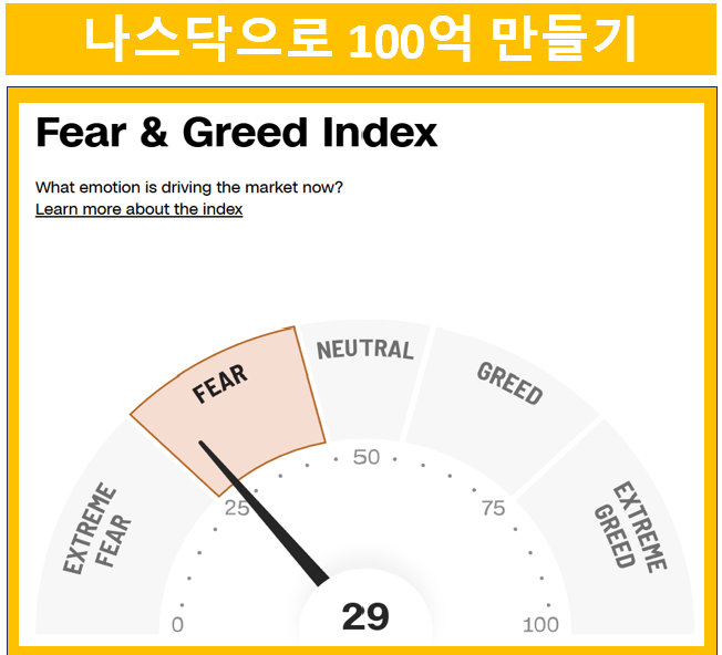 애플을 비롯해 엔비디아, 마이크로소프트, 아마존, 메타, 테슬라, 구글(알파벳), AMD 등 주요 기술주들이 1.9%에서 최대 8%까지 급등했습니다. 이는 전반적인 시장 분위기 개선과 더불어 해당 기업들의 성장 기대감이 반영된 결과입니다. 특히 테슬라는 이례적인 8% 상승을 기록하며 시장의 주목을 받았습니다. 그러나 아직 뉴욕공포탐욕지수는 공포구간에 머물러 있습니다. 투자자로서 공포구간에 매수를 하는 것이 장기적으로 수익을 극대화할 수 있습니다.