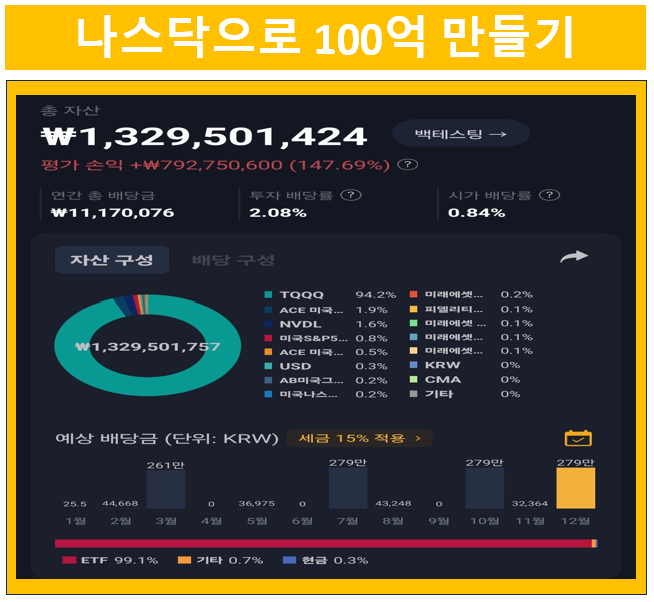 | 미국 나스닥 투자로 12억 5천만원 돌파했습니다. (3) | 2024.12.21 |