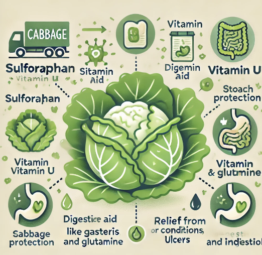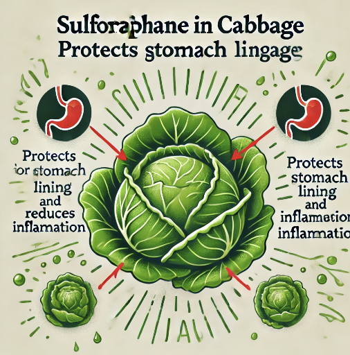 양배추에는 '설포라판'이라는 항산화 성분이 풍부하게 들어 있어요. 설포라판은 위장 점막을 보호하고 염증을 줄여주는 효과가 있어 위 건강을 유지하는 데 중요한 역할을 합니다. 특히 위벽을 덮고 있는 점막을 강화해, 위산으로부터 위를 보호해주고, 위염과 같은 염증성 질환의 발생을 줄이는 데 도움을 줘요.