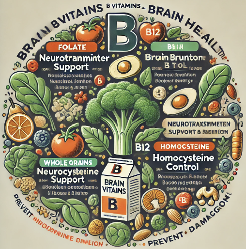 이 외에도 엽산, 비타민 B6, B12와 같은 비타민 B군은 신경전달물질의 합성과 뇌 기능 유지에 필수적인데요. 이 성분들은 뇌 속의 호모시스테인이라는 물질의 농도를 조절해 신경 손상을 방지할 수 있어요. 시금치와 브로콜리 같은 채소에 많이 들어 있고, 통곡물과 견과류에도 풍부해요.